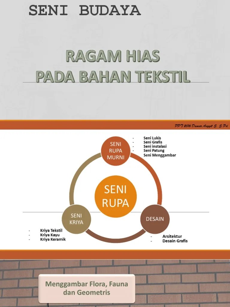 Penerapan ragam hias pada bahan tekstil, penerapan ragam hias flora, fauna, dan geometris pada bahan tekstil banyak dijumpai di berbagai. Subscribe · penerapan ragam hias pada bahan tekstil. Play this game to review education. Tekstil adalah bahan yang berasal dari . Buku gambar kalian, kemudian terapkan lah ragam hias tersebut pada bahan tekstil!